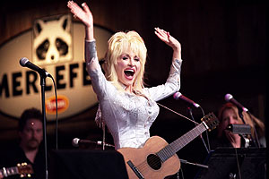 Dolly Parton gets the crowd on their feet.